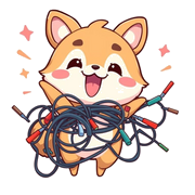 Instantly download and print this funny digital artwork of an energetic animal enthusiastically holding a tangled mess of wires. Add chaotic fun to any space.
